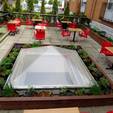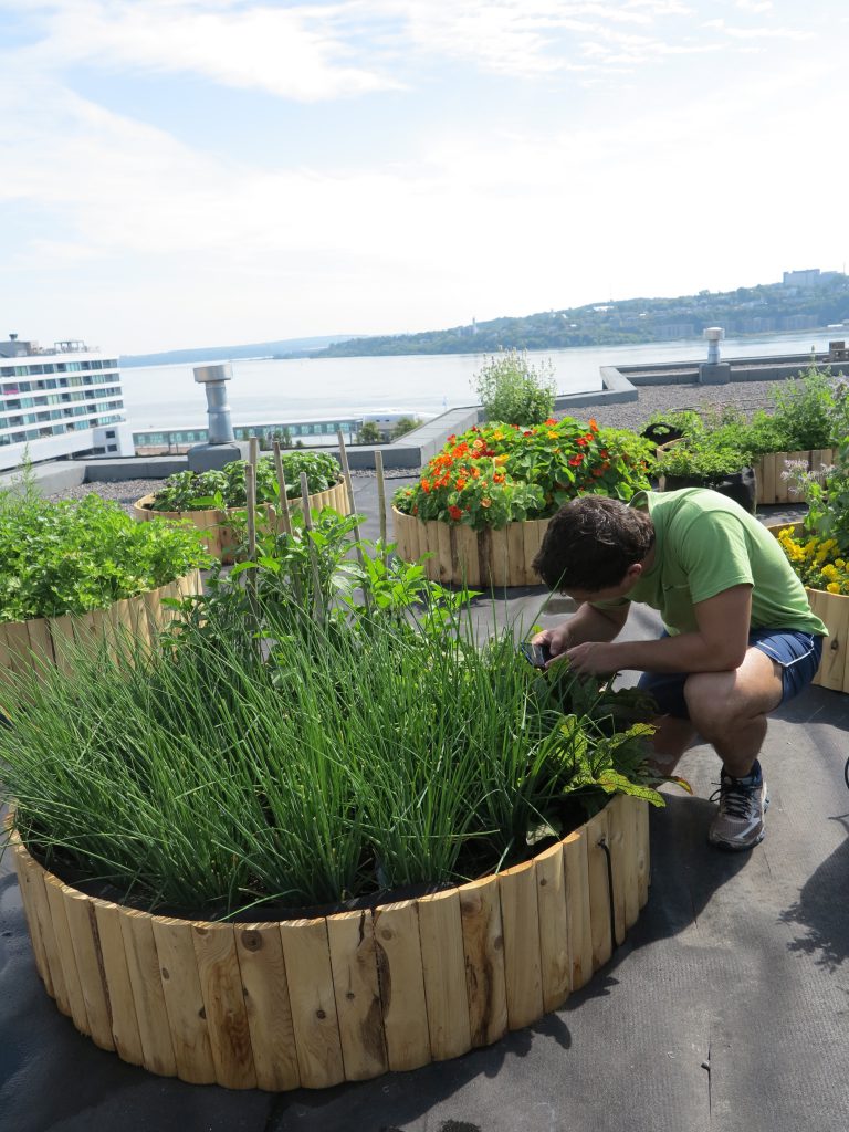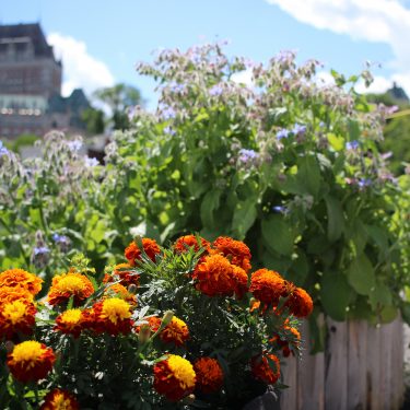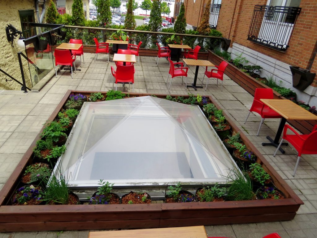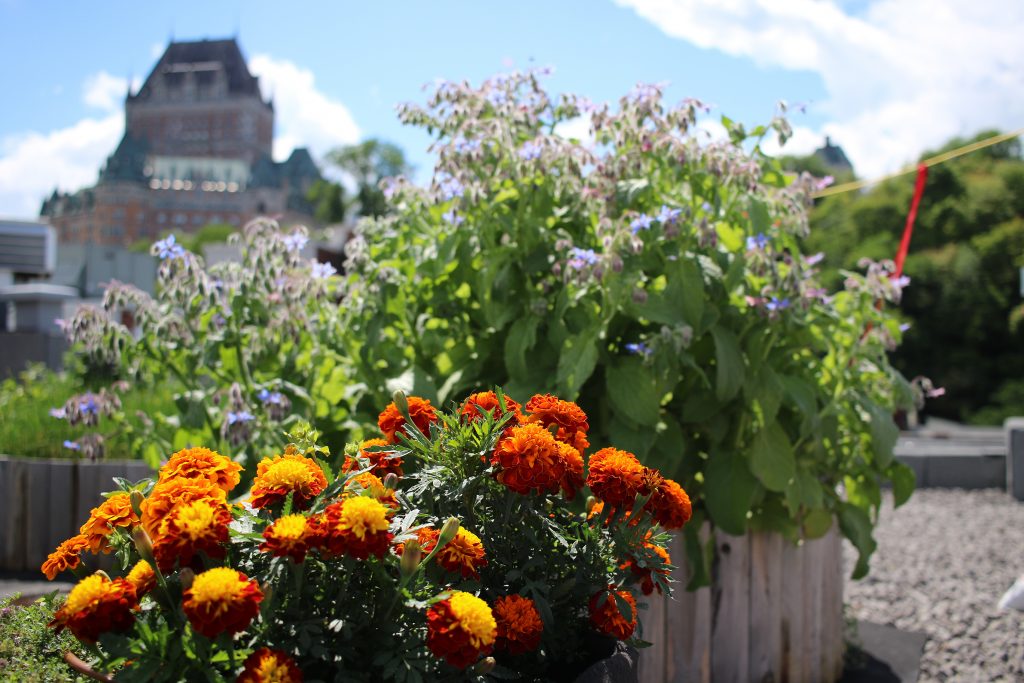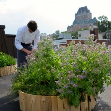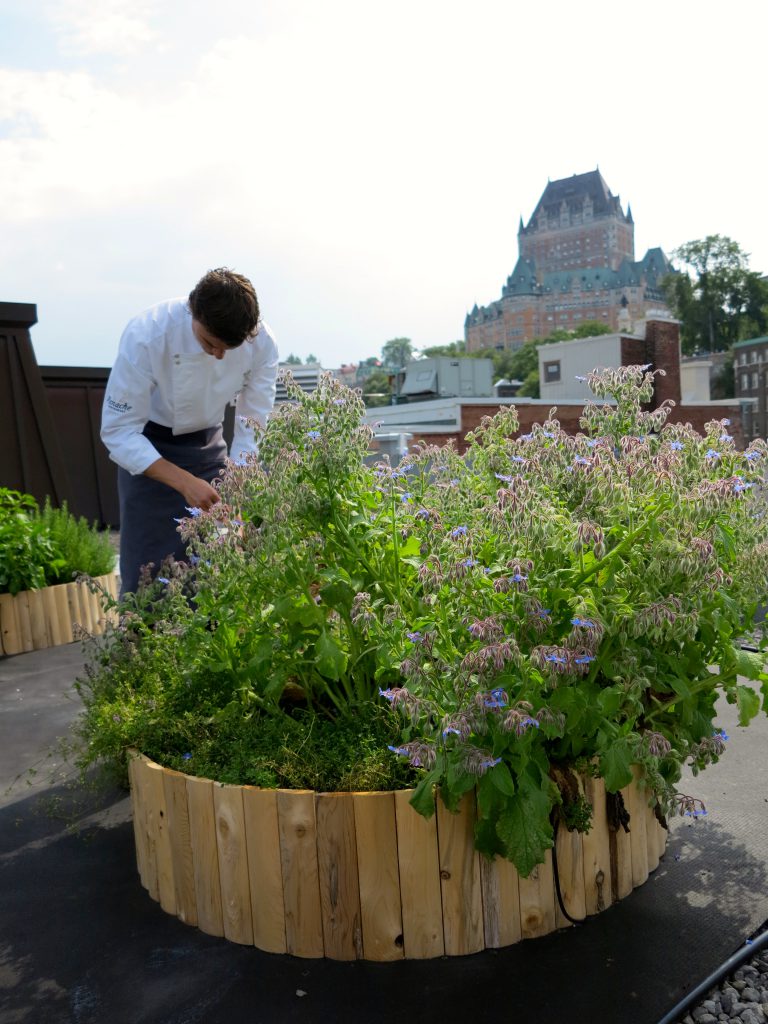 Combiner esthétique et comestible, rien de plus naturel pour un hôtel et restaurant de luxe. À partir de 2011, le chef de cet établissement Relais et Château situé dans le Vieux-Port a disposé de fines herbes originales, petits fruits et champignons à portée de main, en plus des légumes produits à l’Île d’Orléans pour sa cuisine. En 2012 s’est aussi ajouté un toit-jardin dédié à la production de fleurs comestibles et plantes aromatiques inusitées, qui permettent au chef de donner à ses créations des saveurs originales. Depuis 2017, le jardin est plutôt pris en charge à l’interne et n’est plus réalisé par Les Urbainculteurs.