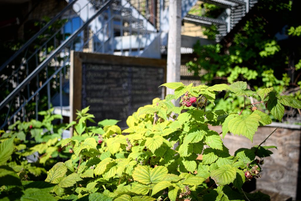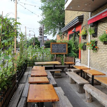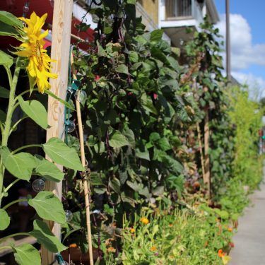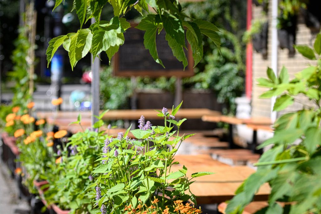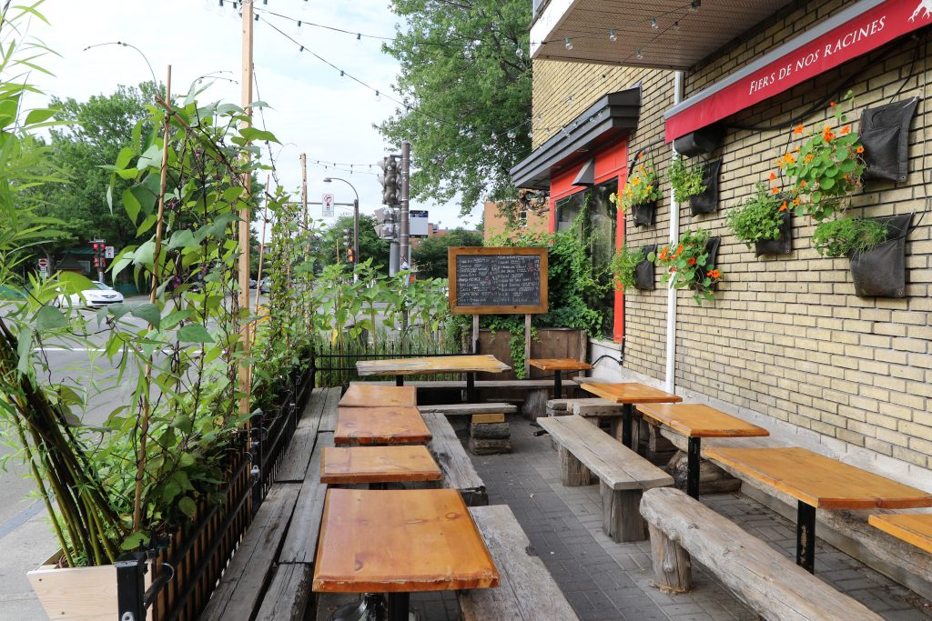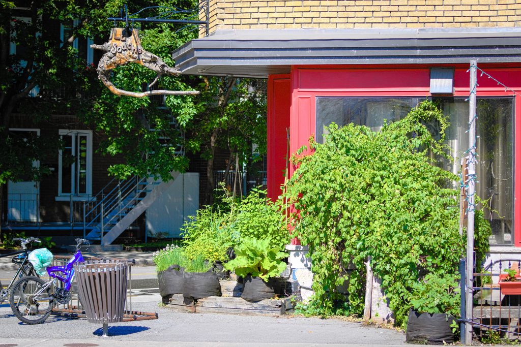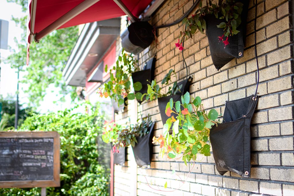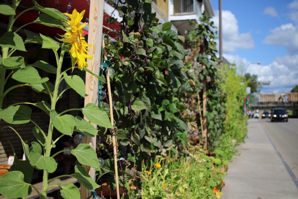 La brasserie artisanale La Souche s’est d’abord installée dans le bouillonnant arrondissement de Limoilou, tout près du cégep. De 2016 à 2020, des écrans végétaux de haricots grimpants, épinards de Malabar et autres tournesols ont créé de l’intimité et de la fraîcheur sur la terrasse, qui donne sur un coin de rue. Les client·e·s peuvent ainsi déguster leur bière tranquillement, bien installé·e·s dans ce cocon de verdure!