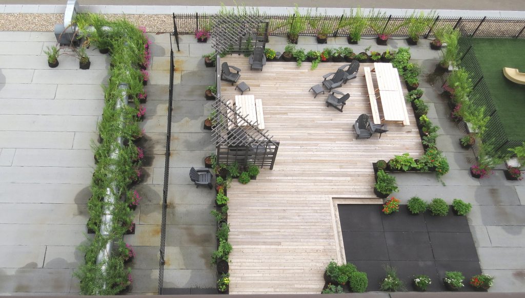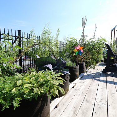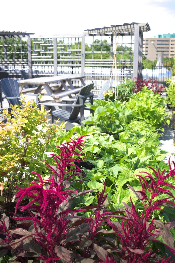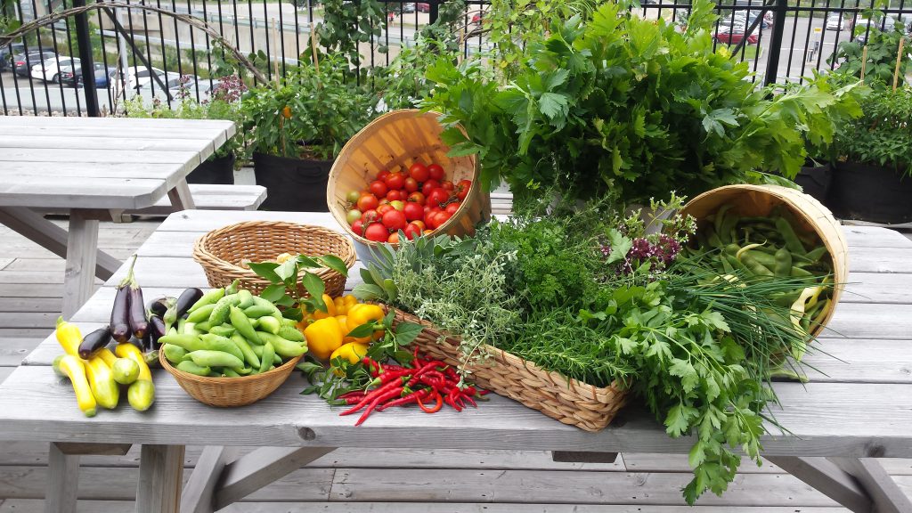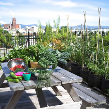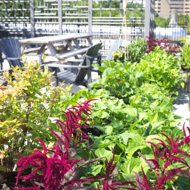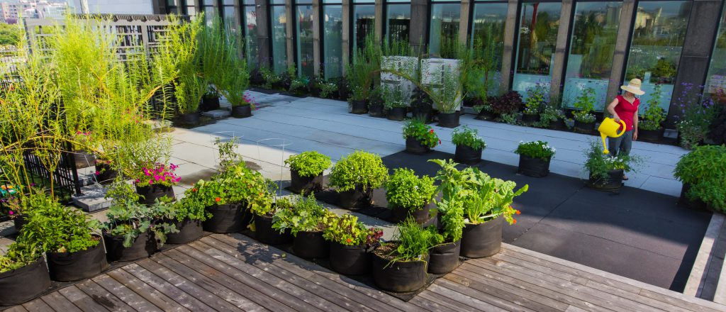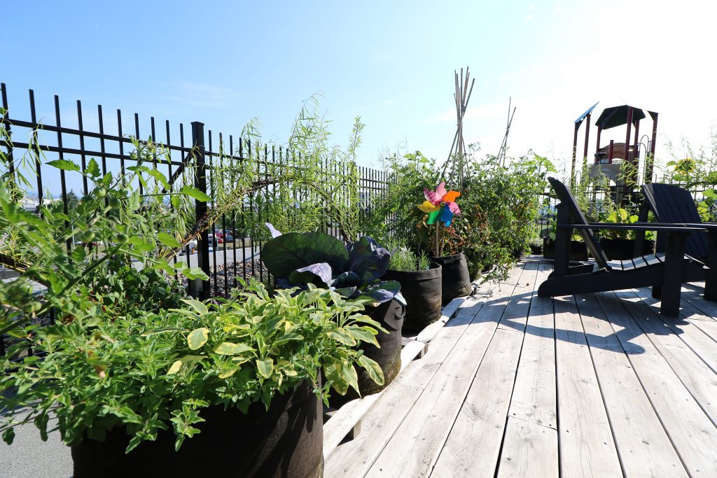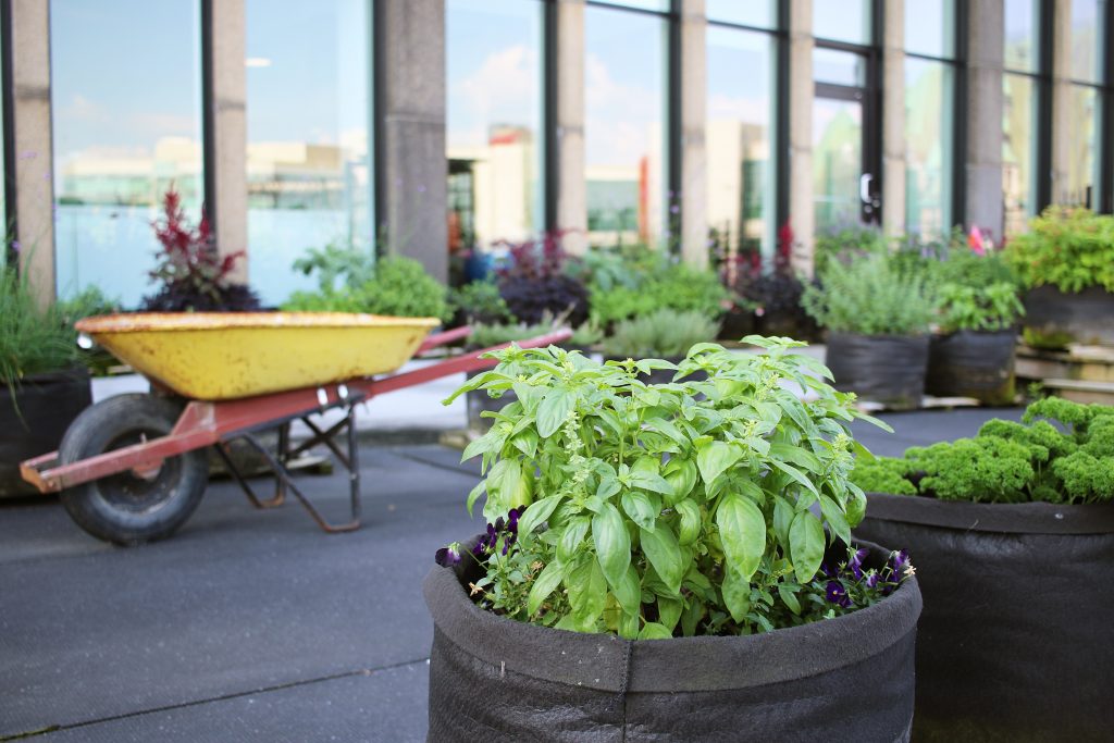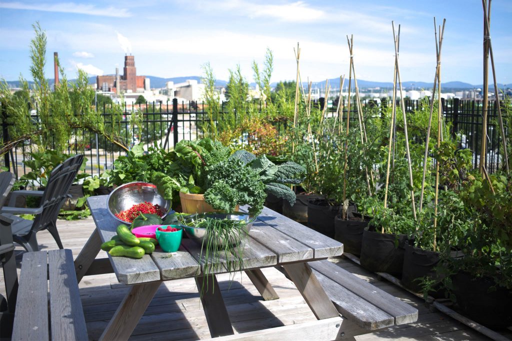 Innover et être originale : c’est le mot d’ordre pour une agence de communication comme Cossette. En emménageant dans ses nouveaux bureaux en 2012, l’entreprise a souhaité offrir à ses employé·e·s un environnement stimulant et créatif. Ce qui s’est concrétisé, entre autres, par une terrasse sur le toit avec BBQ et jardin ! De 2012 à 2018, la cafétéria et plusieurs bureaux avaient vue sur le potager, où les employé·e·s pouvaient cueillir légumes et fines herbes pour agrémenter leur lunch.