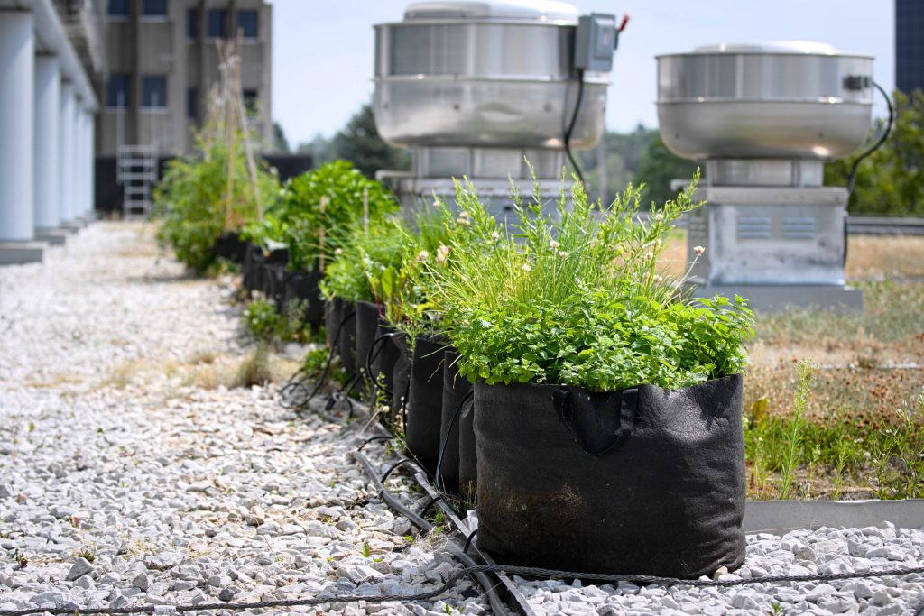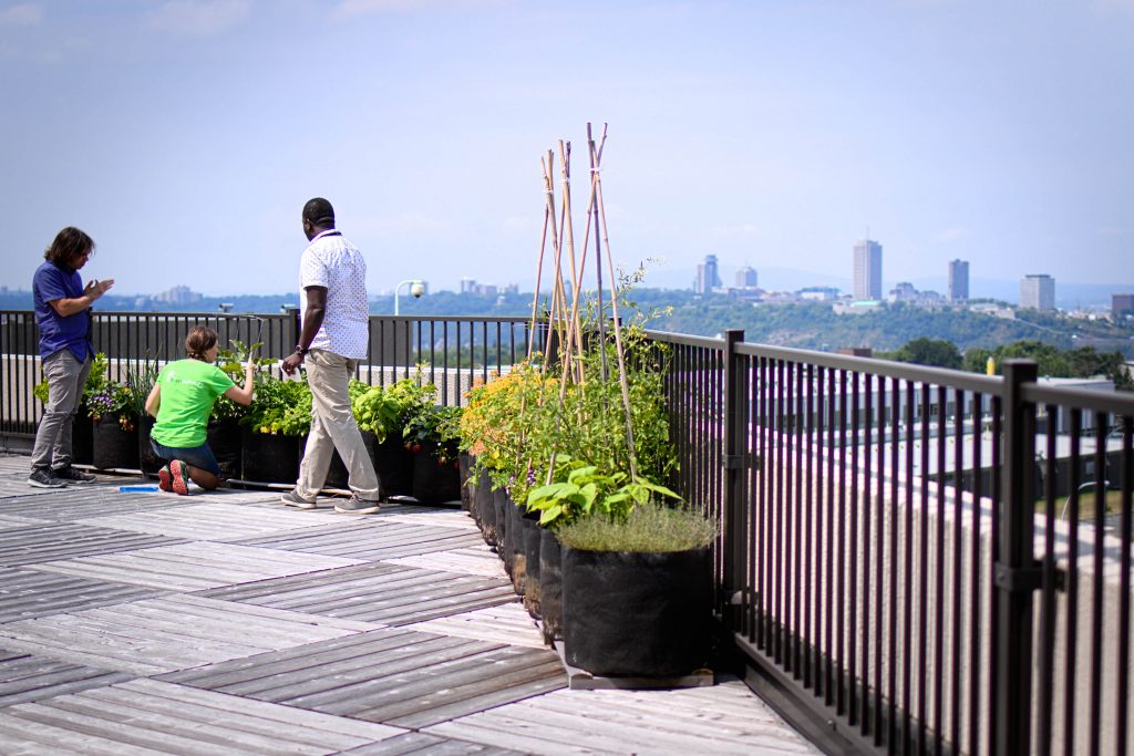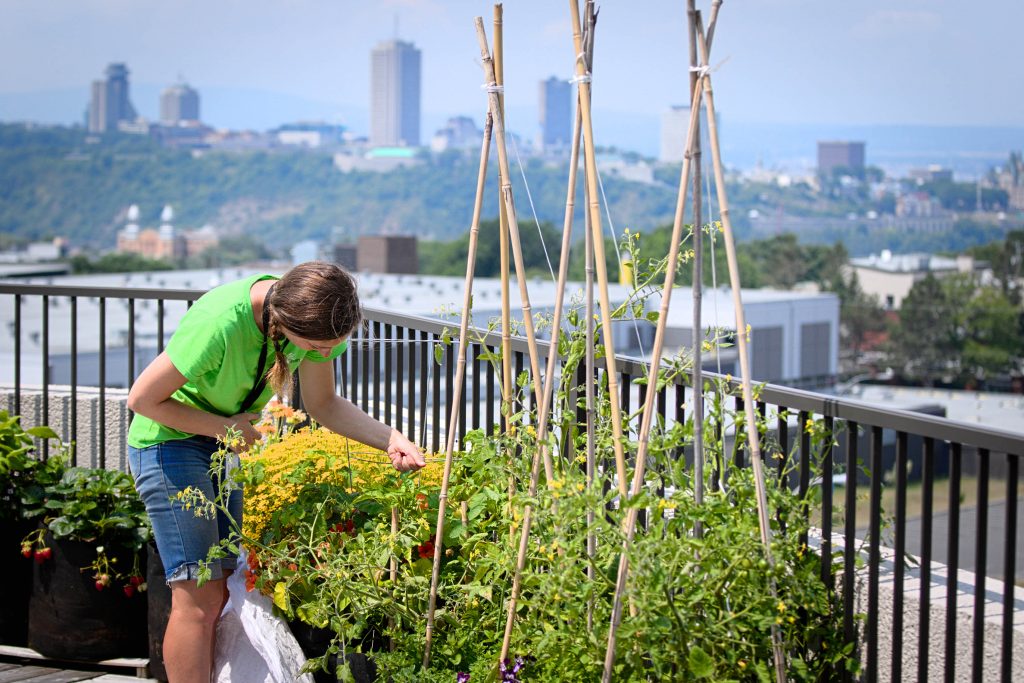 Déjà reconnu comme employeur de choix, Desjardins a bonifié la terrasse des employé·e·s de son siège social de Lévis, en 2018. Comment? En y ajoutant un aménagement comestible et en permettant aux curieux et curieuses de poser leurs questions de jardinage à l’horticultrice présente pour les entretiens. Du même coup, un potager en pots a été installé sur le toit de l’immeuble voisin (faisant aussi partie du siège social) afin de fournir des récoltes ultra fraîches au restaurant situé au dernier étage. Desjardins n’aura jamais si bien porté son nom!