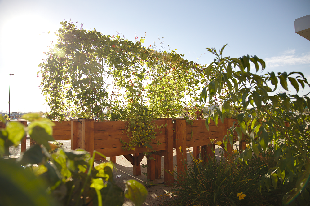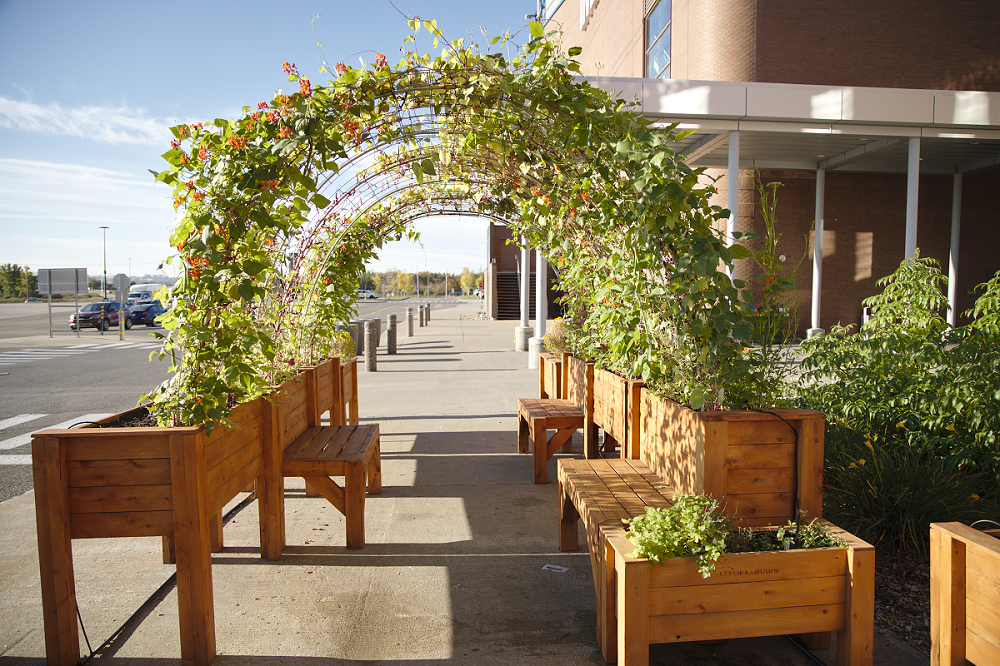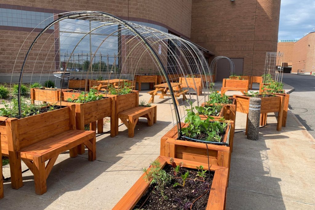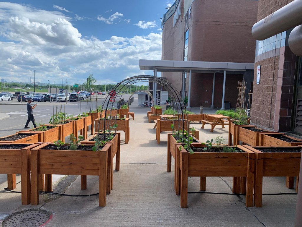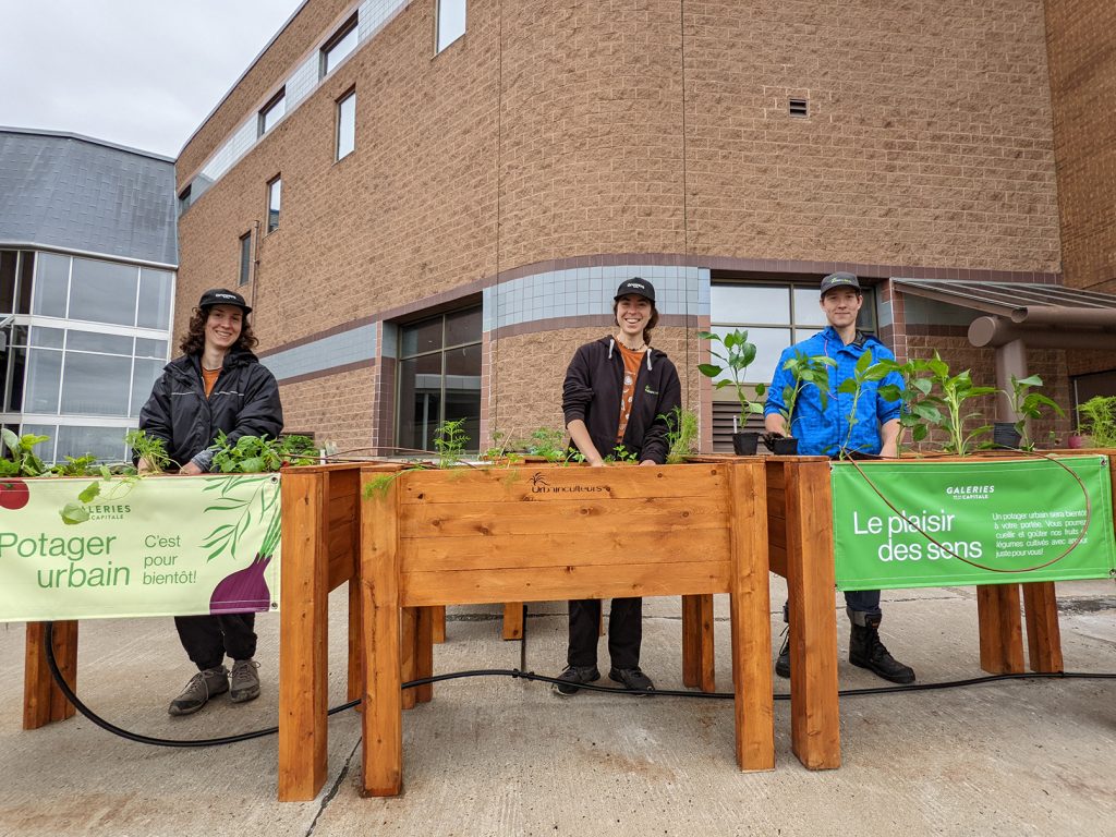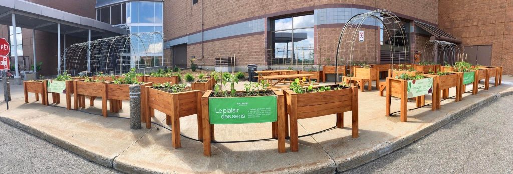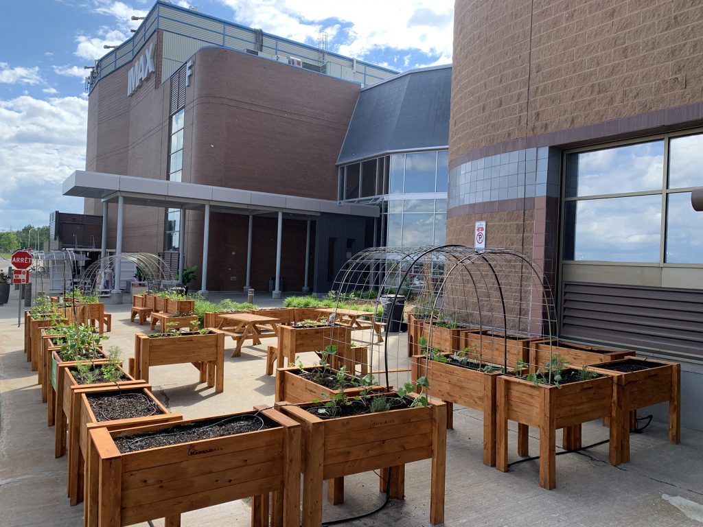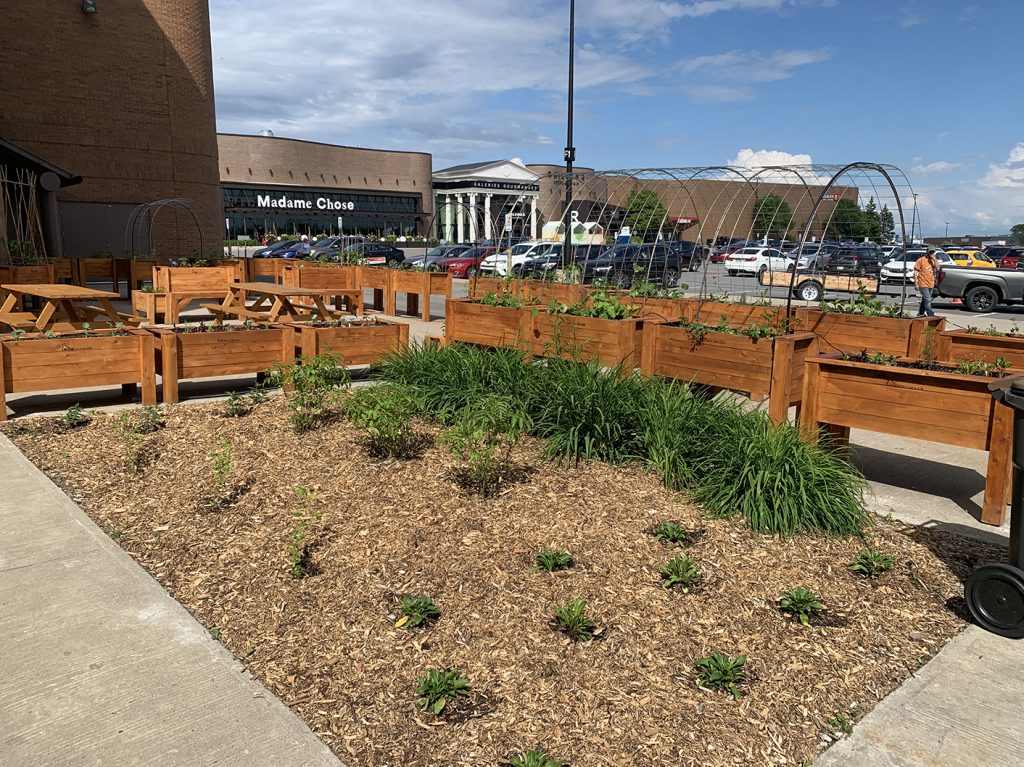 S’appliquant à avoir les meilleures pratiques et équipements dans une optique écologique, les Galeries de la Capitale tenaient à verdir et embellir leur propriété avec des cultures utiles. C’est donc avec des bacs en mode « Incroyables comestibles » que nous avons aménagé un potager solidaire à l’entrée du cinéma Imax, près du Mégaparc.