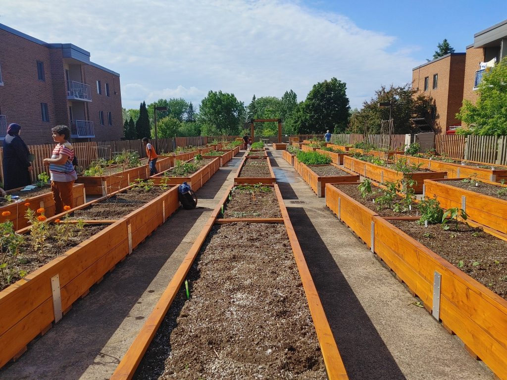 Réalisé en partenariat avec la Ville de Québec et l’Office municipal de l’habitation du Québec, le jardin communautaire sur le toit du stationnement souterrain du 780 rue du Prince-Édouard, dans le quartier Saint-Roch, se veut un lieu inclusif et dynamique qui permettra à différentes clientèles, citoyen·ne·s et résident·e·s, de cultiver une parcelle de jardin.