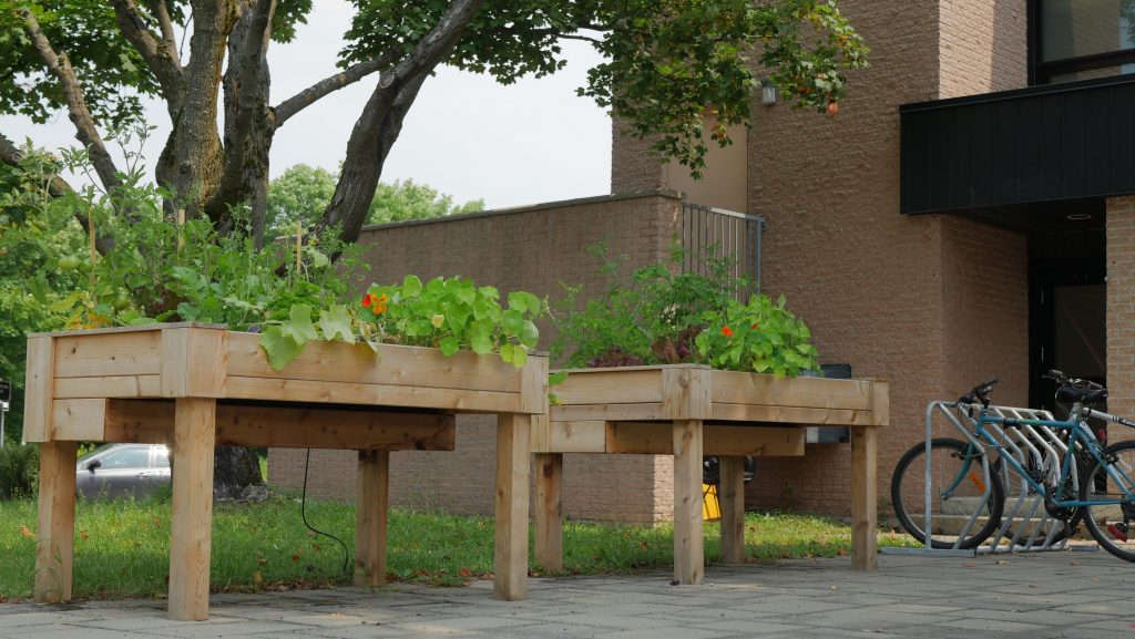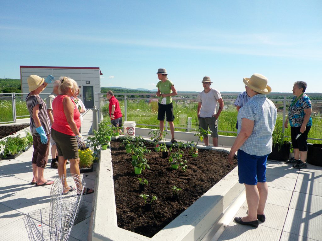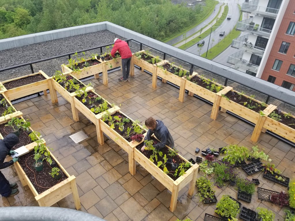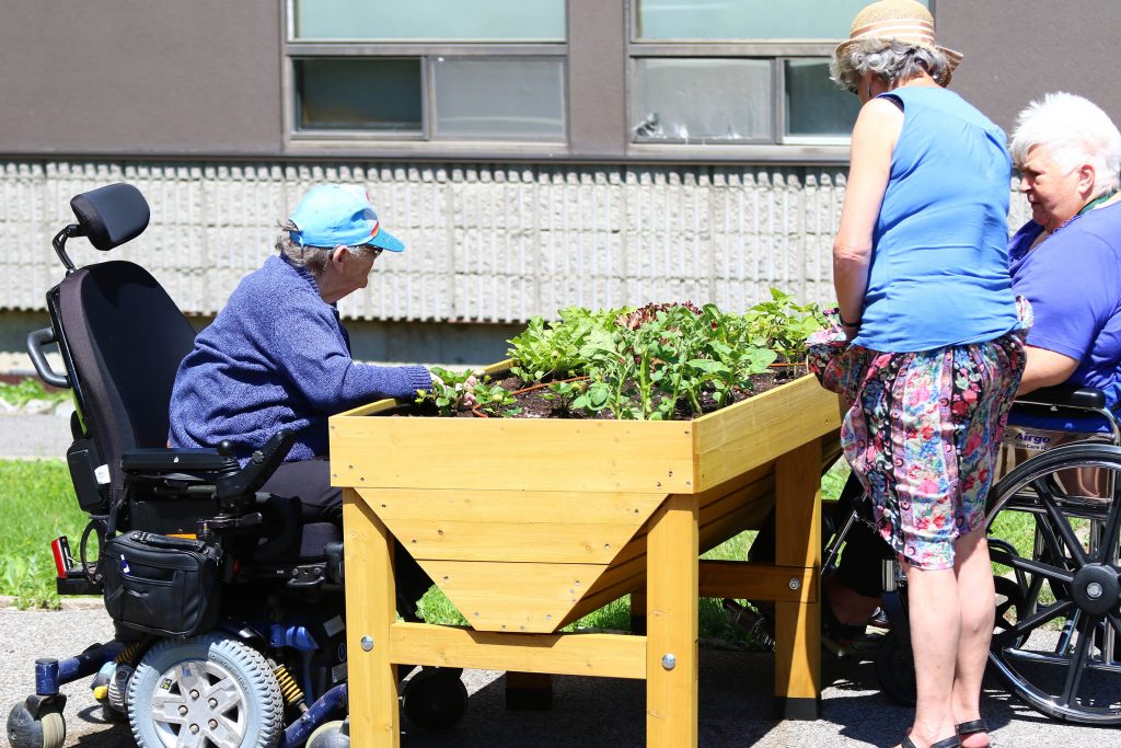 Canne, fauteuil roulant, arthrose : rien pour arrêter ces jardinier·ère·s! Des bacs surélevés de la résidence St-Paul-Apôtre au toit-jardin de la résidence des Diamants, en passant par la terrasse du Jardin Le Flandres, les végétaux fournissent aux résident·e·s une occasion de sortir, de rester actif·ive·s et d’être en contact avec la nature. Au Faubourg-du-Moulin, une résidence du Groupe Dallaire, ce sont des bacs surélevés disposés sur la terrasse du toit qui forment le jardin communautaire.